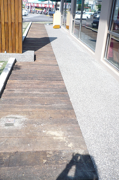 另外也非常特別的是戶外區鋪的步道,是用回收再利用的鐵軌枕木製成的